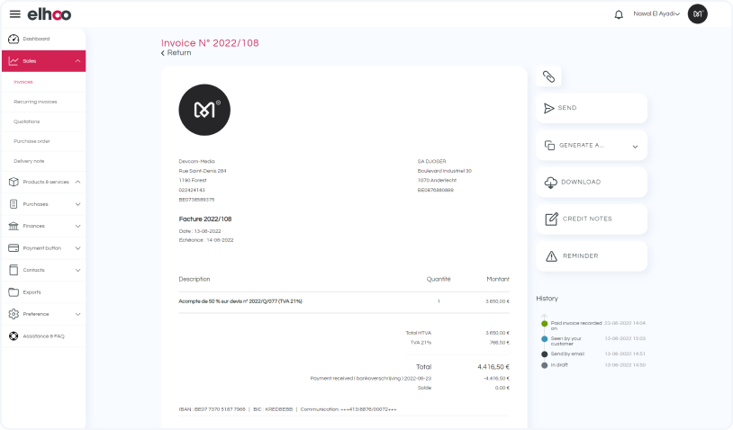 Read receipt, notification of unpaid invoices, payment reminders, ... elhoo takes care of everything to reduce your debts as much as possible.