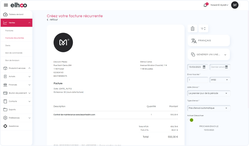 Vous facturez le même montant tous les mois? Toutes les semaines? Programmez l'envoi de factures récurrentes à l'intervalle de votre choix.